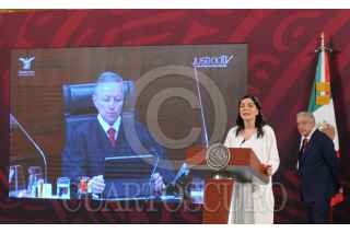 CIUDAD DE MÉXICO, 19ABRIL2023.- Andrés Manuel López Obrador, presidente de México, encabezó la conferencia mañanera de este miércoles en Palacio Nacional, donde habló sobre la decisión de la SCJN de rechazar qué la Guardia Nacional pase a manos de la Sedena. FOTO: DANIEL AUGUSTO /CUARTOSCURO.COM