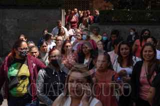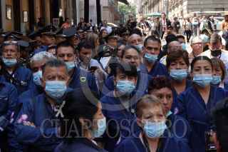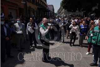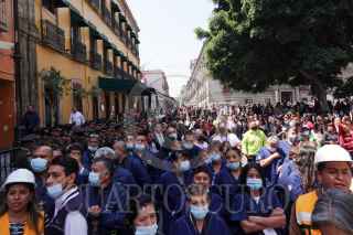 CIUDAD DE MÉXICO, 19ABRIL2023.- Trabajadores de diversas dependencias salieron a la calle al Primer Simulacro 2023 en el Centro Histórico. FOTO: GRACIELA LÓPEZ /CUARTOSCURO.COM
