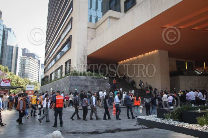 CIUDAD DE MÉXICO, 19ABRIL2023.- Cientos de personas de la zona Polanco realizaron el simulacro de sismo que se llevó a cabo a las 11 de la mañana a cargo de protección civil. FOTO: ANDREA MURCIA /CUARTOSCURO.COM