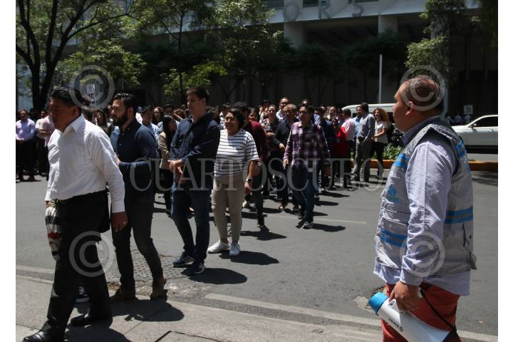 CIUDAD DE MÉXICO, 19ABRIL2023.- Cientos de personas de la zona Polanco realizaron el simulacro de sismo que se llevó a cabo a las 11 de la mañana a cargo de protección civil. FOTO: ANDREA MURCIA /CUARTOSCURO.COM