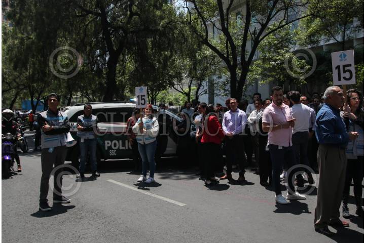 CIUDAD DE MÉXICO, 19ABRIL2023.- Cientos de personas de la zona Polanco realizaron el simulacro de sismo que se llevó a cabo a las 11 de la mañana a cargo de protección civil. FOTO: ANDREA MURCIA /CUARTOSCURO.COM