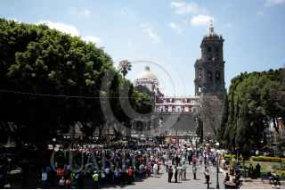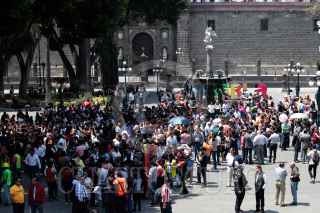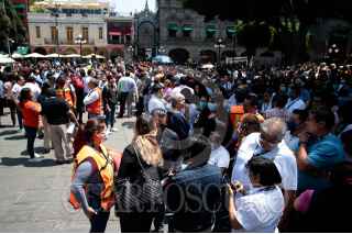 PUEBLA, PUEBLA, 19ABRIL2023.- Decenas de poblanos se concentraron en el zócalo de la ciudad por el Simulacro Nacional de Sismo 2023. FOTO: MIREYA NOVO/ CUARTOSCURO.COM