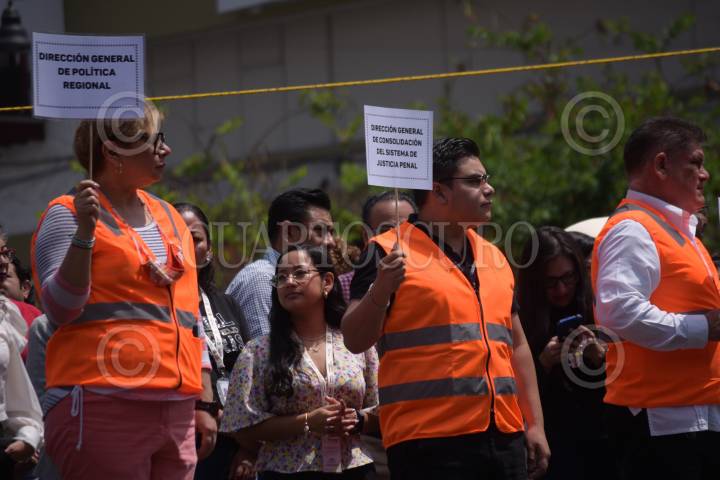 XALAPA, VERACRUZ, 19ABRIL2023.- Los trabajadores de Palacio de Gobierno y Seguridad Pública salieron al parque Juárez y a la plaza Lerdo como parte del Simulacro Nacional que se realizó en estados de la República Mexicana. FOTO: YERANIA ROLÓN/CUARTOSCURO.COM