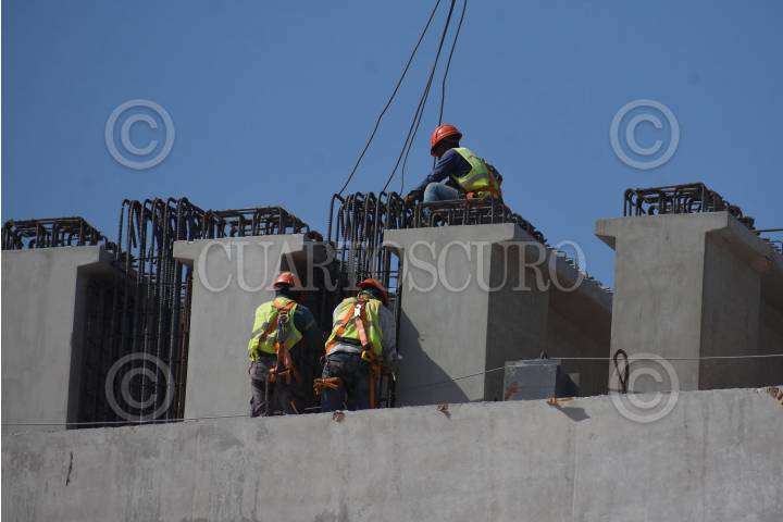 CAMPECHE, CAMPECHE 19 DE ABRIL 2023.- Trabajos de nivelado de pilares y columnas elevadas del tramo dos del Tren Maya en Campeche, como parte de los trabajos se derrumbaron tres pilares por no cumplir con los estándares de calidad. Este fin de semana se llevara a cabo la evaluación de los avances en Chetumal. FOTO: MICHAEL BALAM/CUARTOSCURO.COM