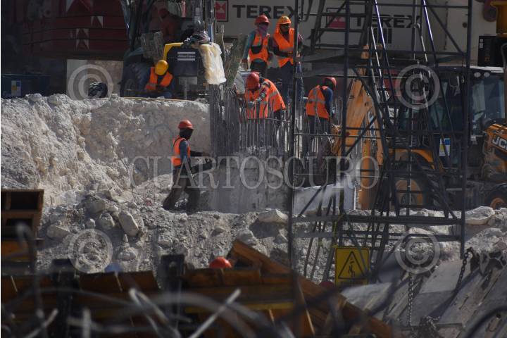 CAMPECHE, CAMPECHE 19 DE ABRIL 2023.- Trabajos de nivelado de pilares y columnas elevadas del tramo dos del Tren Maya en Campeche, como parte de los trabajos se derrumbaron tres pilares por no cumplir con los estándares de calidad. Este fin de semana se llevara a cabo la evaluación de los avances en Chetumal. FOTO: MICHAEL BALAM/CUARTOSCURO.COM