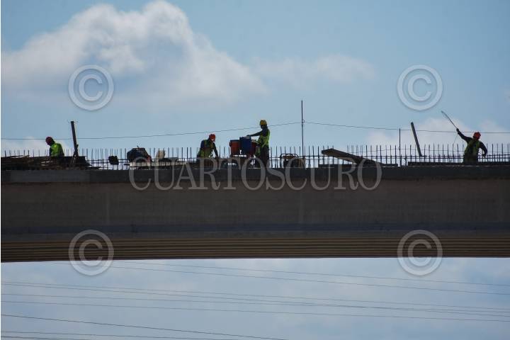CAMPECHE, CAMPECHE 19 DE ABRIL 2023.- Trabajos de nivelado de pilares y columnas elevadas del tramo dos del Tren Maya en Campeche, como parte de los trabajos se derrumbaron tres pilares por no cumplir con los estándares de calidad. Este fin de semana se llevara a cabo la evaluación de los avances en Chetumal. FOTO: MICHAEL BALAM/CUARTOSCURO.COM