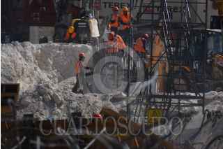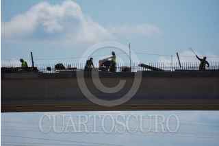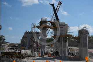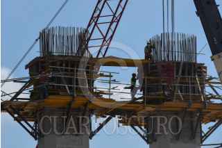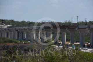 CAMPECHE, CAMPECHE 19 DE ABRIL 2023.- Trabajos de nivelado de pilares y columnas elevadas del tramo dos del Tren Maya en Campeche, como parte de los trabajos se derrumbaron tres pilares por no cumplir con los estándares de calidad. Este fin de semana se llevara a cabo la evaluación de los avances en Chetumal. FOTO: MICHAEL BALAM/CUARTOSCURO.COM
