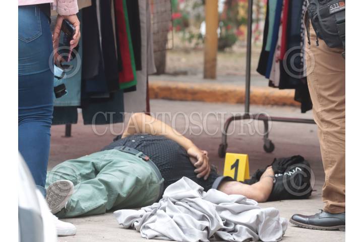 TLALNEPANTLA, ESTADO DE MÉXICO, 19ABRIL2023.- Asesinaron a un hombre de varios disparos por la espalda cuando caminaba en un tianguis de ropa, ubicado en la calle de Guanábana esquina con avenida Paseo de las Aves, en la colonia Valle Dorado, los responsables se dieron a la fuga. FOTO: ROGELIO MORALES/CUARTOSCURO.COM