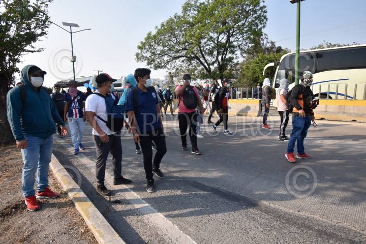 CHILPANCINGO, GUERRERO, 19ABRIL2023.- Policías del estado de Guerrero, con equipo antimotín, repliegan y evitan bloqueo en la autopista del Sol por parte de los estudiantes de la Escuela Normal Rural "Raúl Isidro Burgos’" de Ayotzinapa, hubo intercambio de pedradas, lanzamiento de petardos y de gas lacrimógeno, no se reportan lesionados graves. FOTO: DASSAEV TÉLLEZ ADAME/CUARTOSCURO.COM