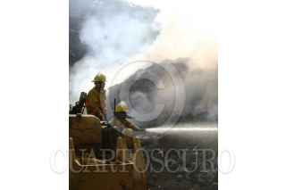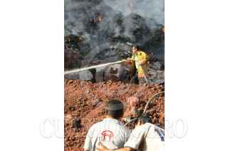 JIUTIPEC, MORELOS. 20ABRIL2007.- Elementos de la Dirección de Protección Civil, bomberos de CIVAC y Cuernavaca; participaron en las acciones para controlar el incendio que se registro en un predio utilizado como tiradero clandestino, ubicado en la calle Tezontepec conocido como "Mina Tezontle", se han acumulado desechos urbanos, que ante el incremento de las altas temperaturas, fueron campo fértil para el incendio. FOTO: JORGE GARCÍA/CUARTOSCURO.COM