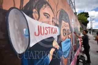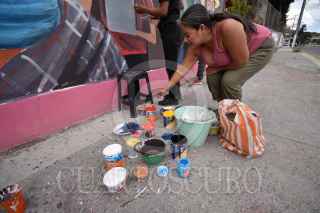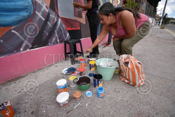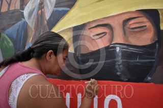 CHILPANCINGO, GUERRERO, 25JUNIO2023.- Estudiantes de segundo año de la Escuela Normal Rural 'Raúl Isidro Burgos' de Ayotzinapa realizan mural en honor a los desaparecidos en Chilpancingo. Esto, gracias a la colaboración de la fundación alemana 'Heinrich Böll', el Instituto Mexicano de Derechos Humanos y Democracia (IMDHD) y el Centro de Derechos Humanos 'Minerva Bello'. Este mural fue pintado sobre el bulevar ‘Vicente Guerrero’ a la altura de la colonia del PRI, en la capital del estado de Guerrero. Y está enmarcado en un proyecto llamado Dignificación de la Memoria de las Víctimas de Desaparición y está financiado por la unión europea a través del Instituto de Derechos Humanos para la Democracia en México y de la Fundación Henrich Böll. FOTO: DASSAEV TÉLLEZ ADAME/CUARTOSCURO.COM
