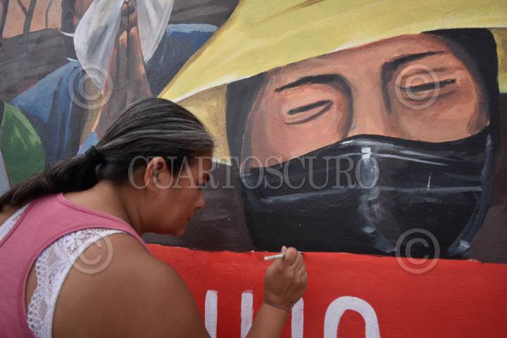 CHILPANCINGO, GUERRERO, 25JUNIO2023.- Estudiantes de segundo año de la Escuela Normal Rural 'Raúl Isidro Burgos' de Ayotzinapa realizan mural en honor a los desaparecidos en Chilpancingo. Esto, gracias a la colaboración de la fundación alemana 'Heinrich Böll', el Instituto Mexicano de Derechos Humanos y Democracia (IMDHD) y el Centro de Derechos Humanos 'Minerva Bello'. Este mural fue pintado sobre el bulevar ‘Vicente Guerrero’ a la altura de la colonia del PRI, en la capital del estado de Guerrero. Y está enmarcado en un proyecto llamado Dignificación de la Memoria de las Víctimas de Desaparición y está financiado por la unión europea a través del Instituto de Derechos Humanos para la Democracia en México y de la Fundación Henrich Böll. FOTO: DASSAEV TÉLLEZ ADAME/CUARTOSCURO.COM